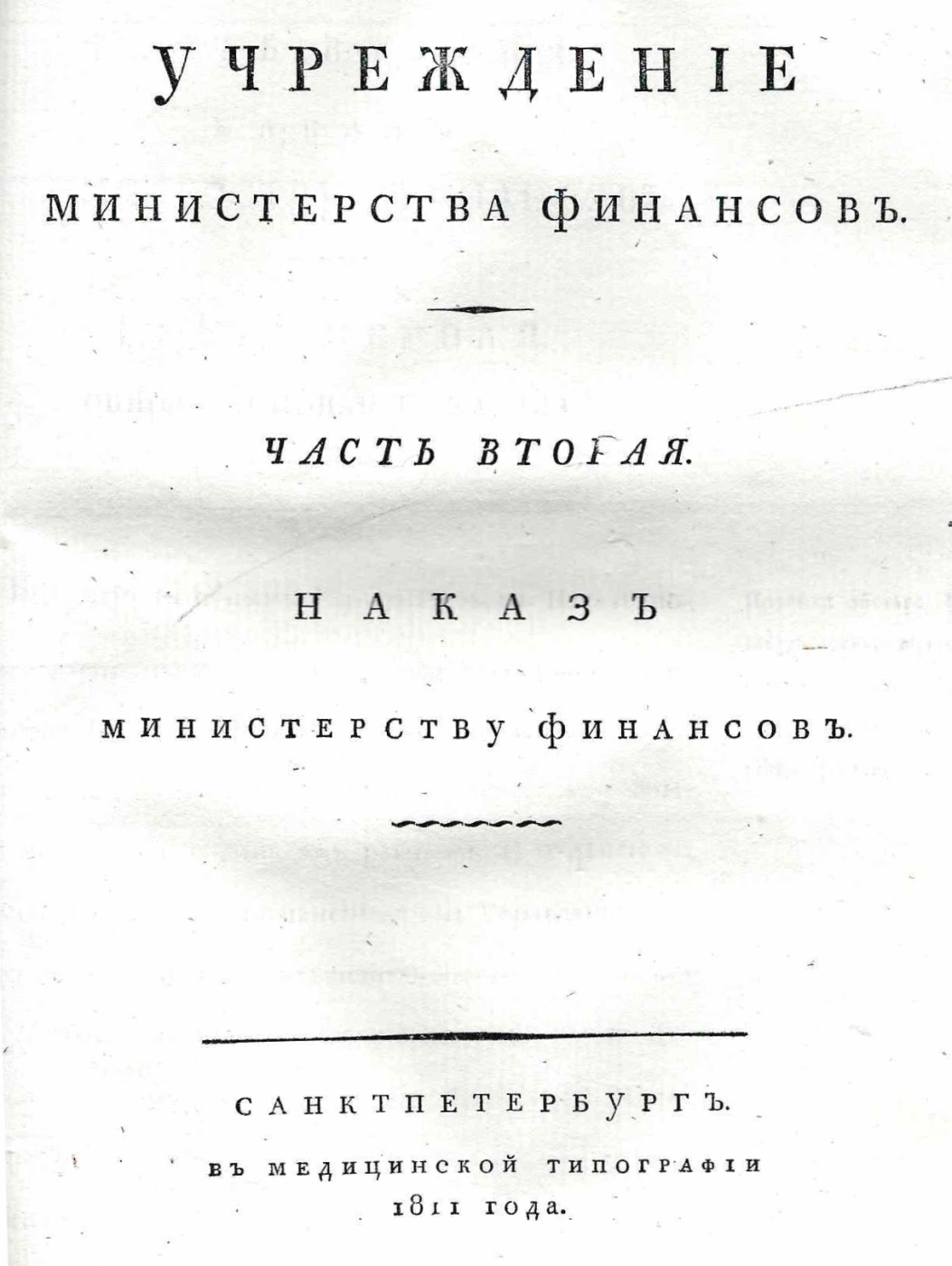 Учреждение Министерства финансов. — Санкт-Петербург : в Медицинской типографии, 1811