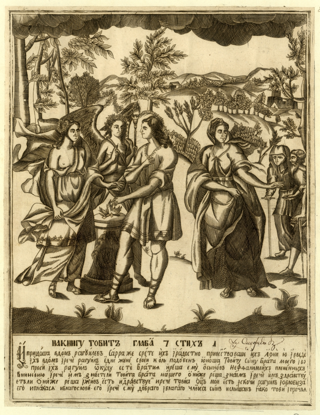 [Товит у Рагуила]: [лубок]. — [Москва]: [б. и.], XVIII в. — 1 л.; 36,1х28 см