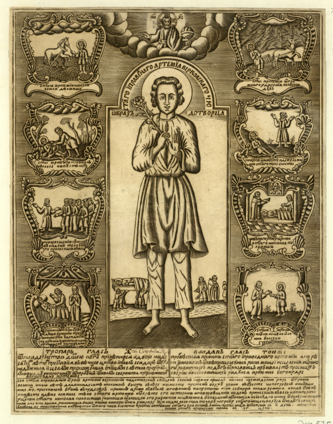 Образ святаго и праведнаго Артемия Веркольскаго Чудотворца: [лубок]. — [Москва]: [б. и.], XVIII в. — 1 л.; 35,9х27,7 см