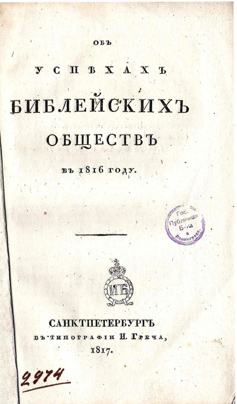 Об успехах библейских обществ.... — В Санктпетербурге: [б. и.], 1815-1819