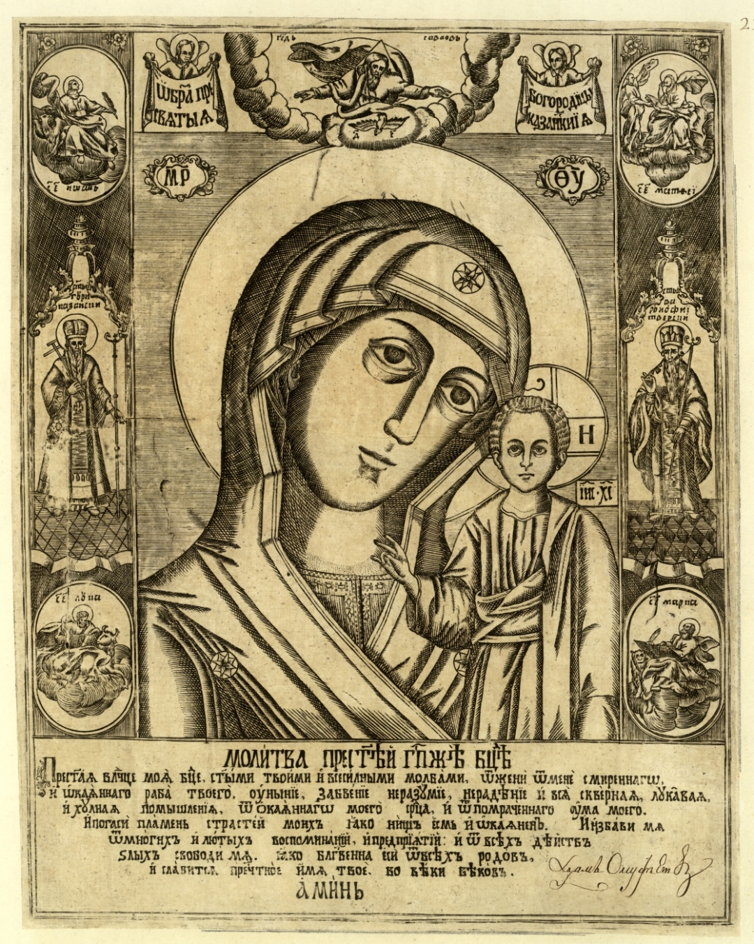 Изображение чудотворного образа Пресвятои Богородицы казанской: [лубок]. — [Москва]: [б. и.], XVIII в. — 1 л.; 22,7х18,2 см