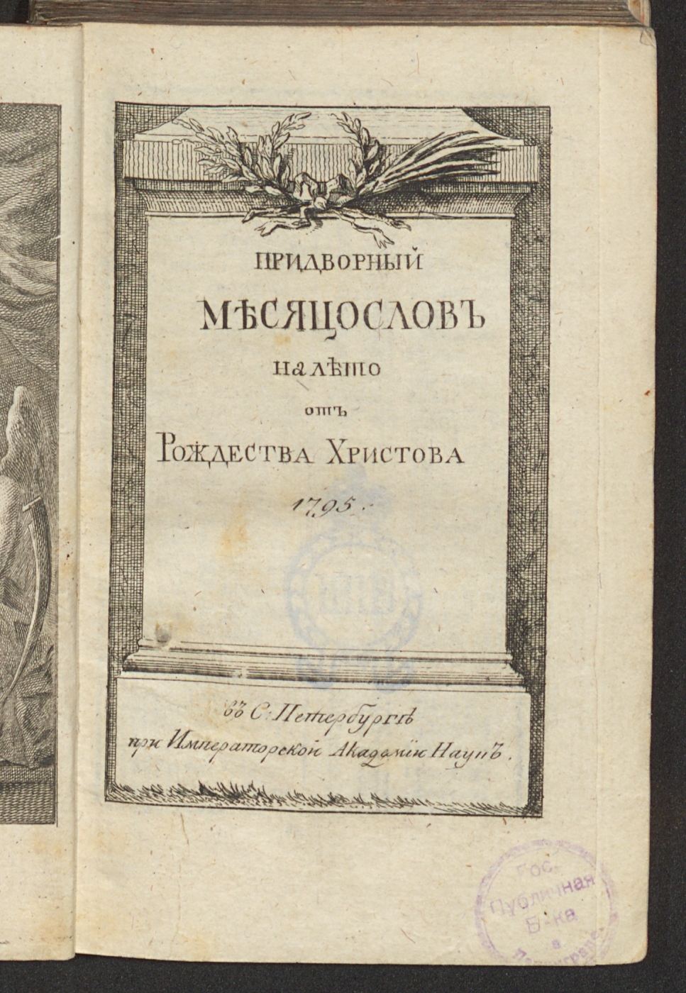 Придворный месяцослов на лето от Рождества Христова 1795. — В С. Петербурге: при Императорской Академии наук, [1794]. — [2], 260 с., [1] л. ил.; 12°