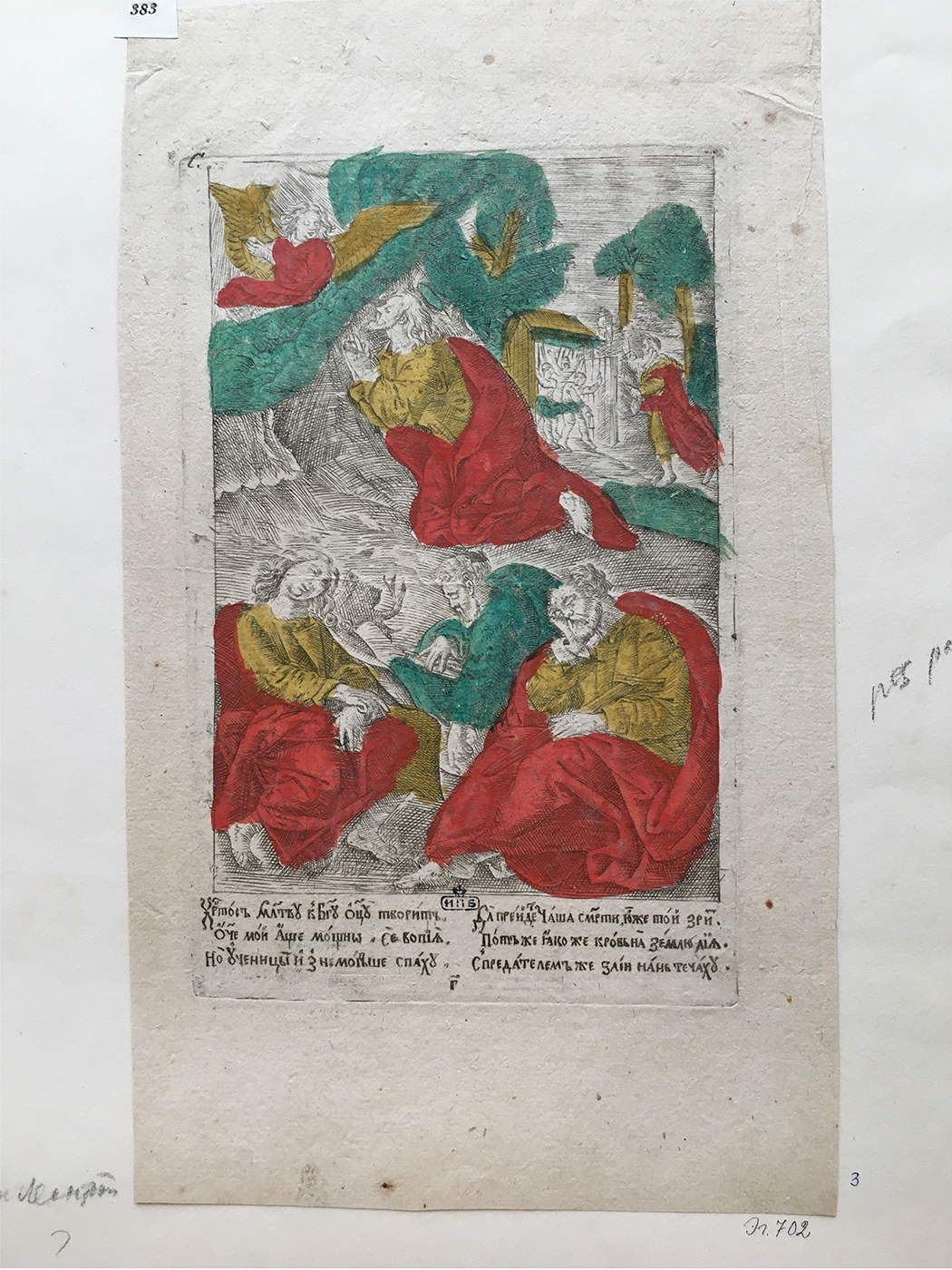 Христос молитву к Богу Отцу творит ... : [лубок]. — [Москва]: [б. и.], XVII в. — 1 л. ; 18х12,2 ; 21,6х13 ; 32х16 см.