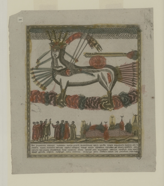 Сие знамение стояще на небеси на градом Шлонским ... : [лубок]. — [Москва]: [б. и.], XIX в. — 1 л.; 36х28,6 ; 44,4х36,1 см.