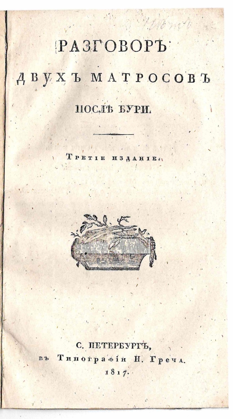 Разговор двух матросов после бури. — С. Петербург: в типографии Н. Греча, 1817. — 12 с.; 8°