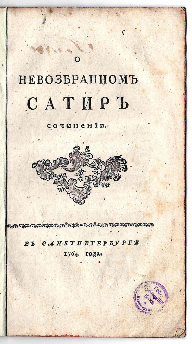 О невозбранном сатир сочинении / [Перевел Я.И.Трусов]. — В Санктпетербурге: [Тип. Акад. наук], 1764. — 16 с.; 8°