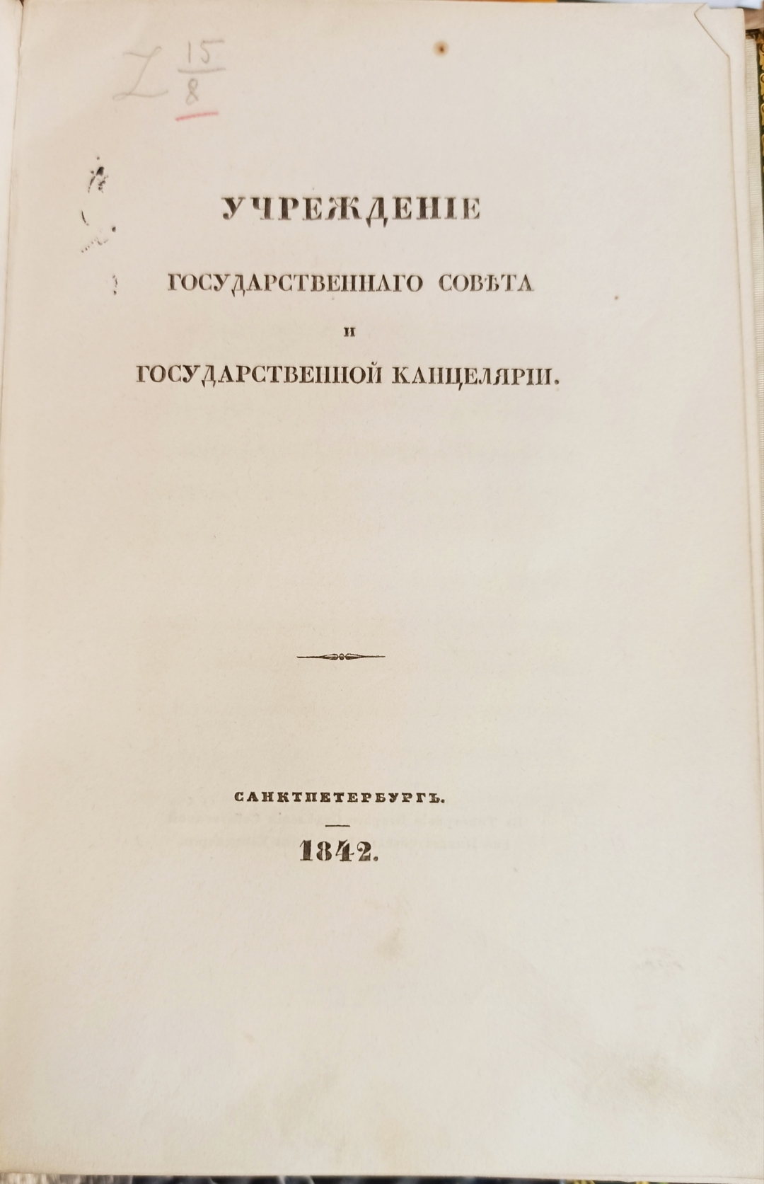 Учреждение Государственного совета и Государственной канцелярии. — Санкт-Петербург: тип. 2 Отд-ния Собств. е. и. в. канцелярии, 1842. — [4], VI, 82, [20] с.; 25 см