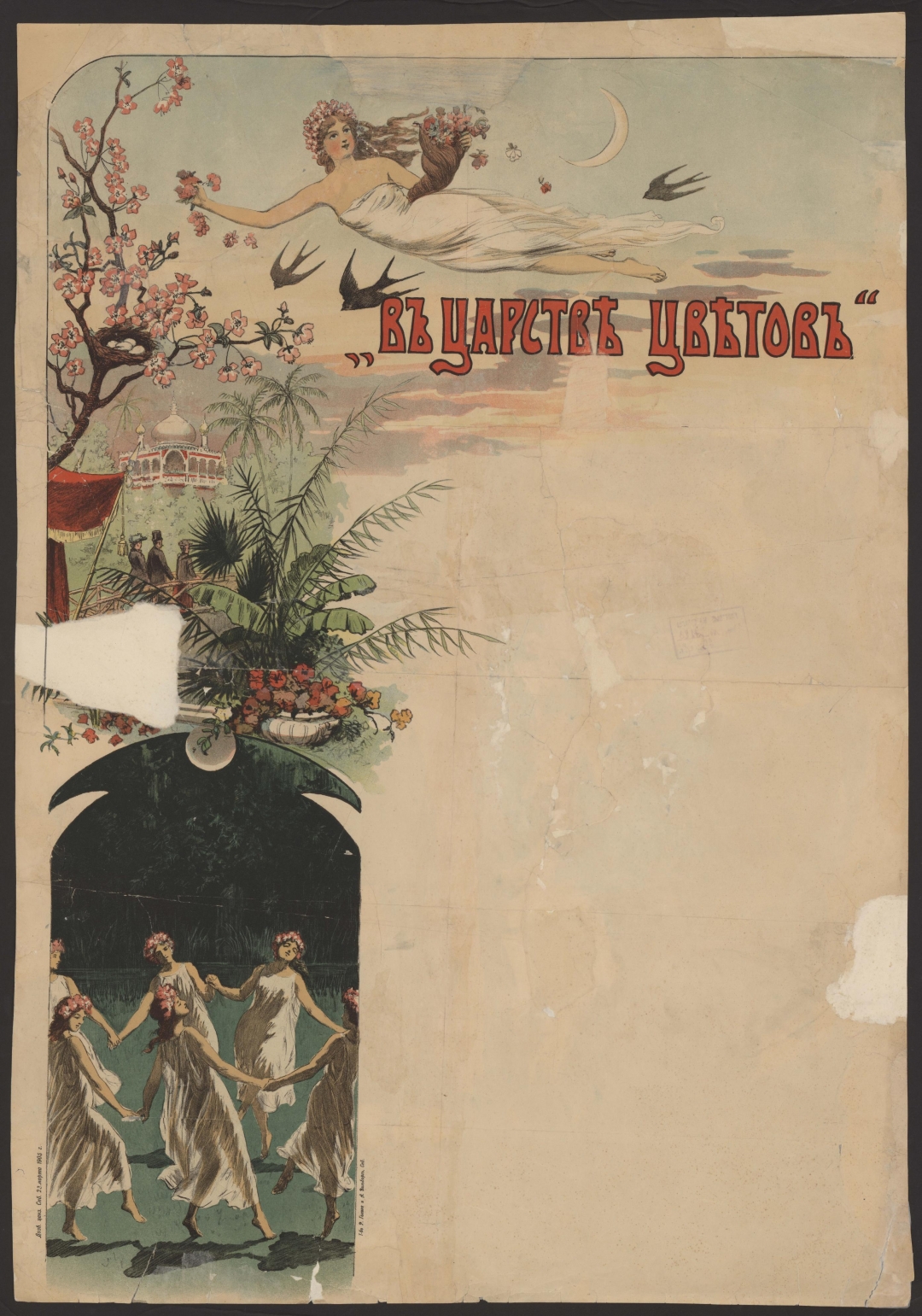 "В царстве цветов" [Бал]: [плакат] . — С.-Петербург : Т-во Р. Голике и А. Вильборг, 1905 . — 1 л.: хромолитогр. ; 83 х 58 см.