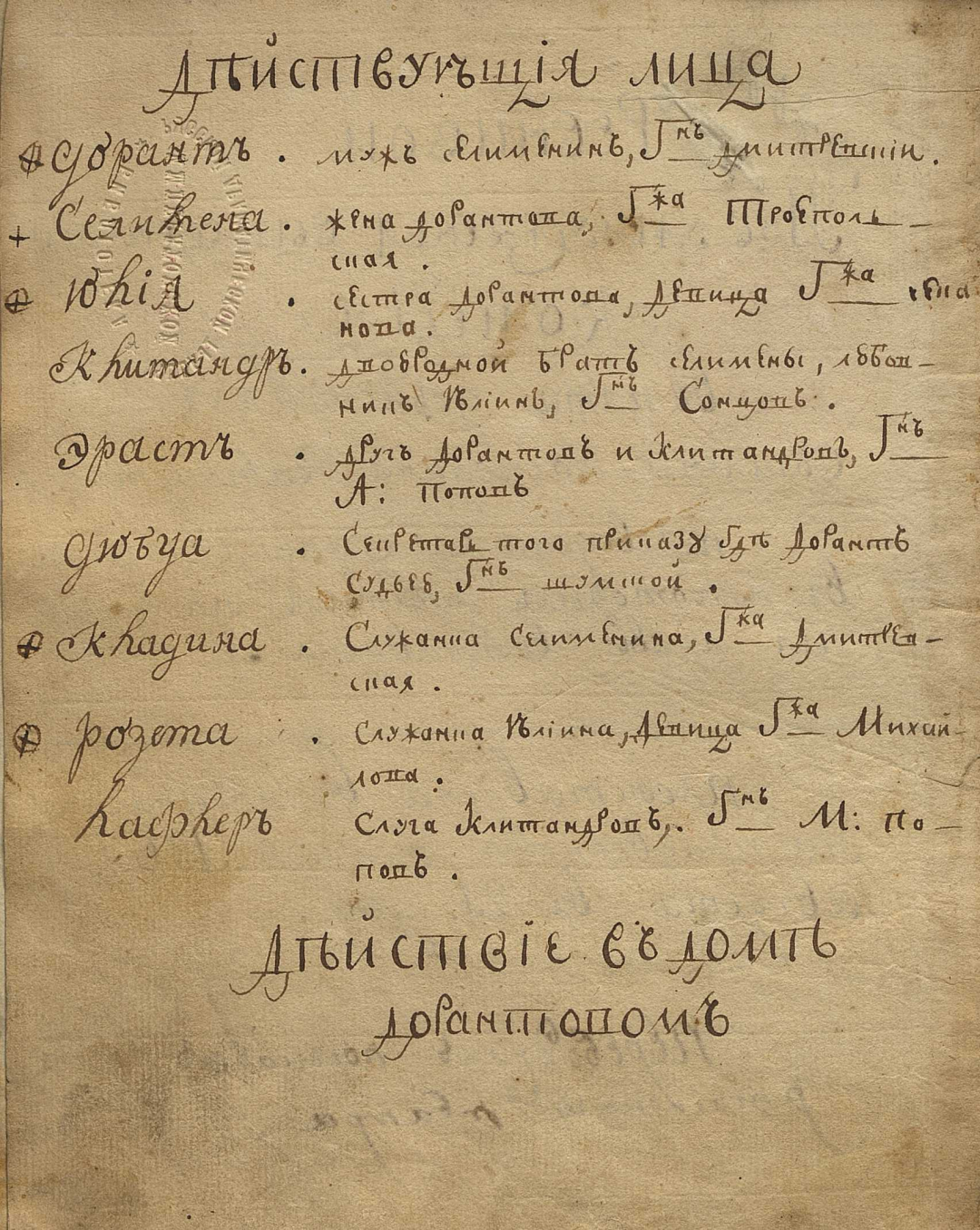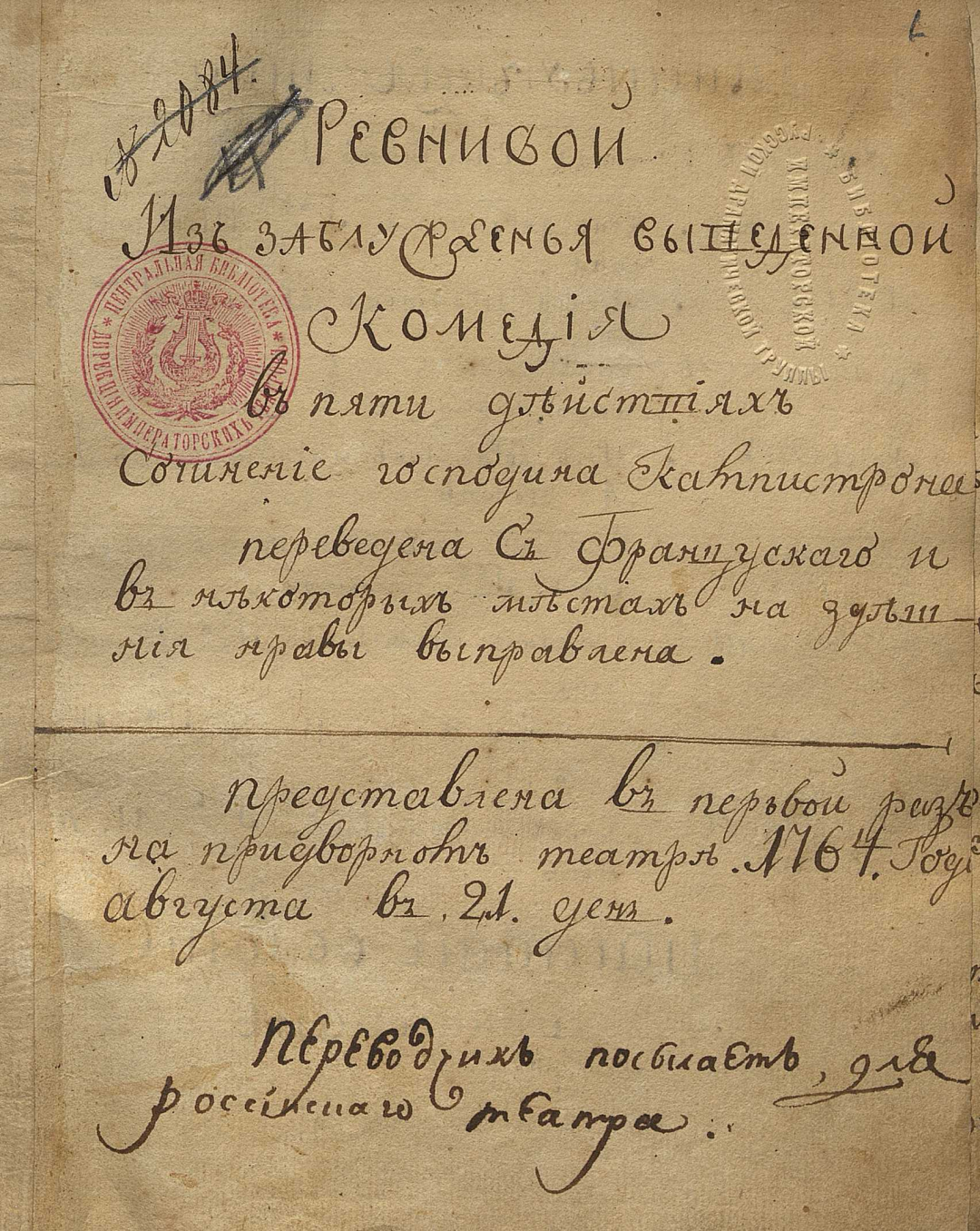 Рабочий экз.; Премьера 1764 г. 21 августа; Исполнители