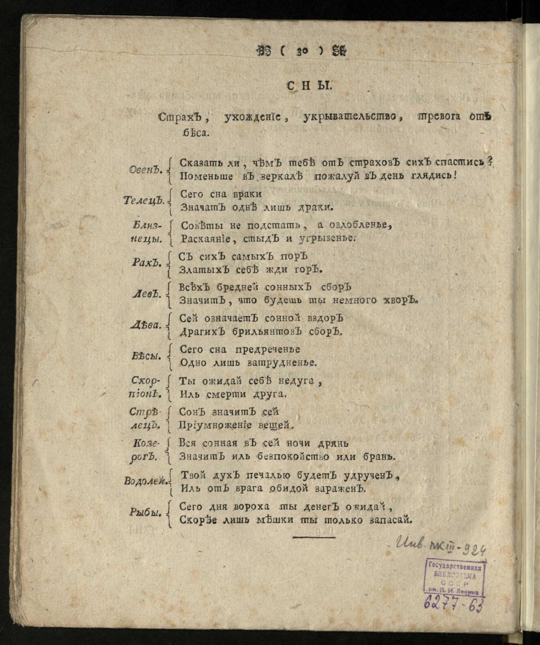 Пометы: на с. [1] обложки (чернила); на с. [2], [3] обложки, титульном листе (карандаш); на с. 30 (чернила, карандаш).