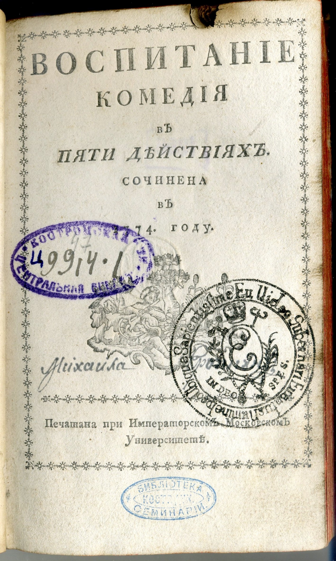 На шмуцтитуле, титульном листе, концевом титульном листе (чернила, карандаш)