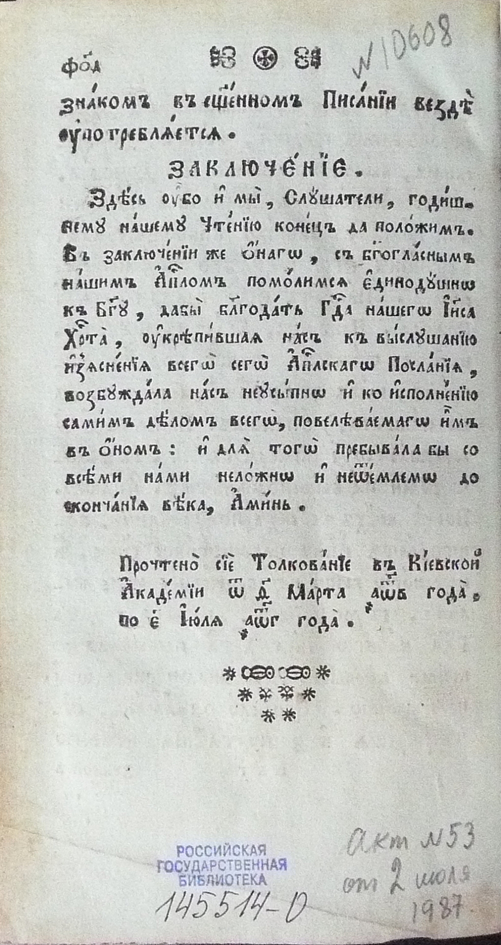 Номер и название архивного собрания, в котором хранится книжный памятник