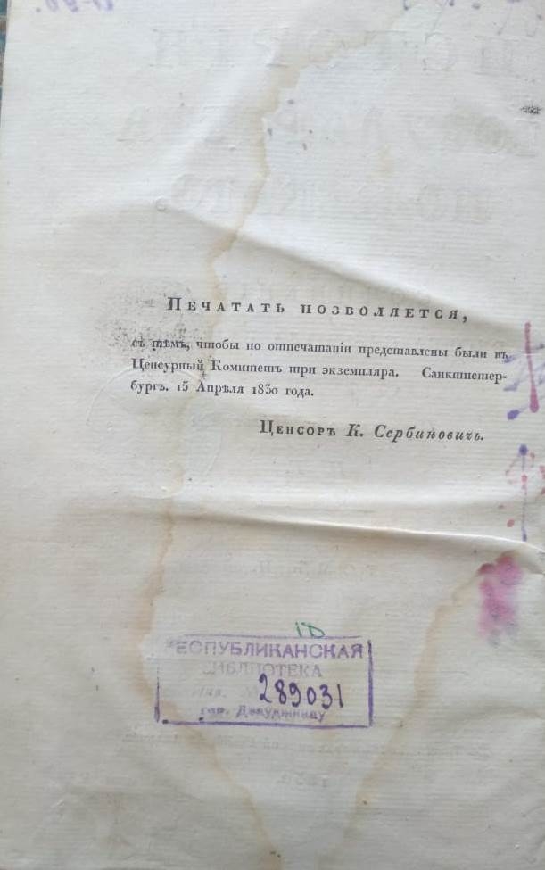 штемпель Республиканской библиотеки (г. Дзауджикау)