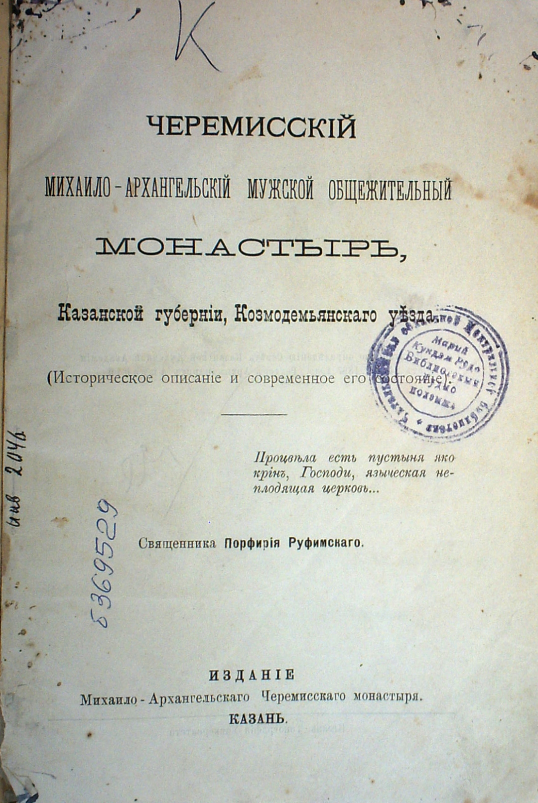 Пятна и загрязнения на обложке и титульном листе.
