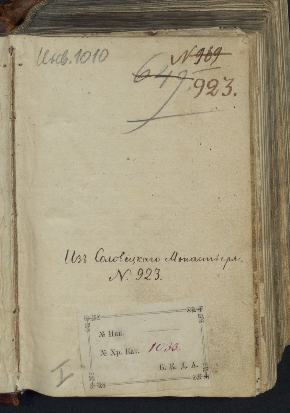 Номер и название архивного собрания, в котором хранится книжный памятник