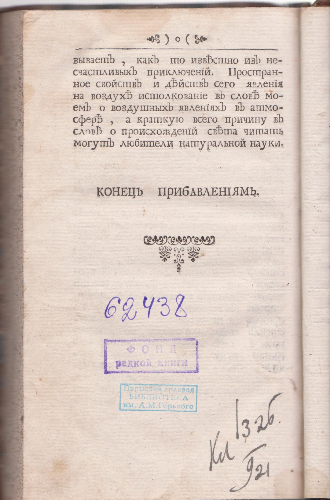 «Заглавный листъ и посвящение заимствованы изъ издания: Вольфианская теоретическая физика. СПБ. 1760» (форзац)