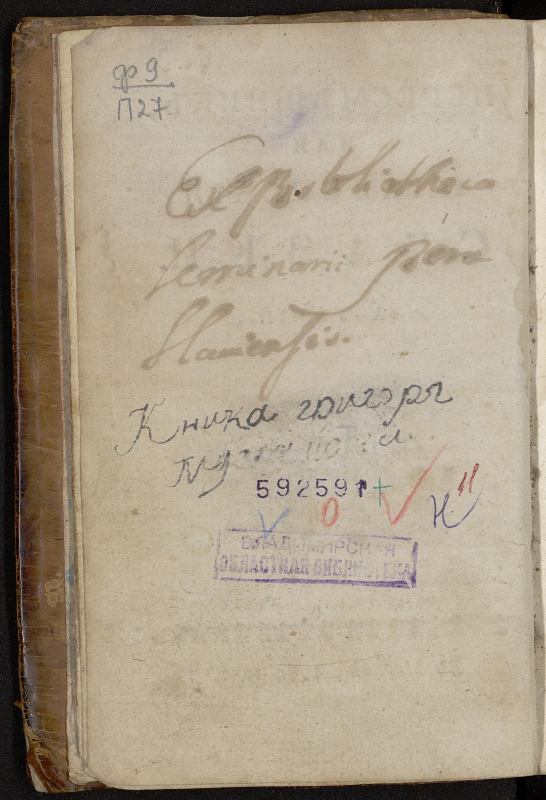 Технические пометы на обороте титульного листа (чернила, красная и зеленая ручка, простой, синий и красный карандаш), с. 17 (чернила)