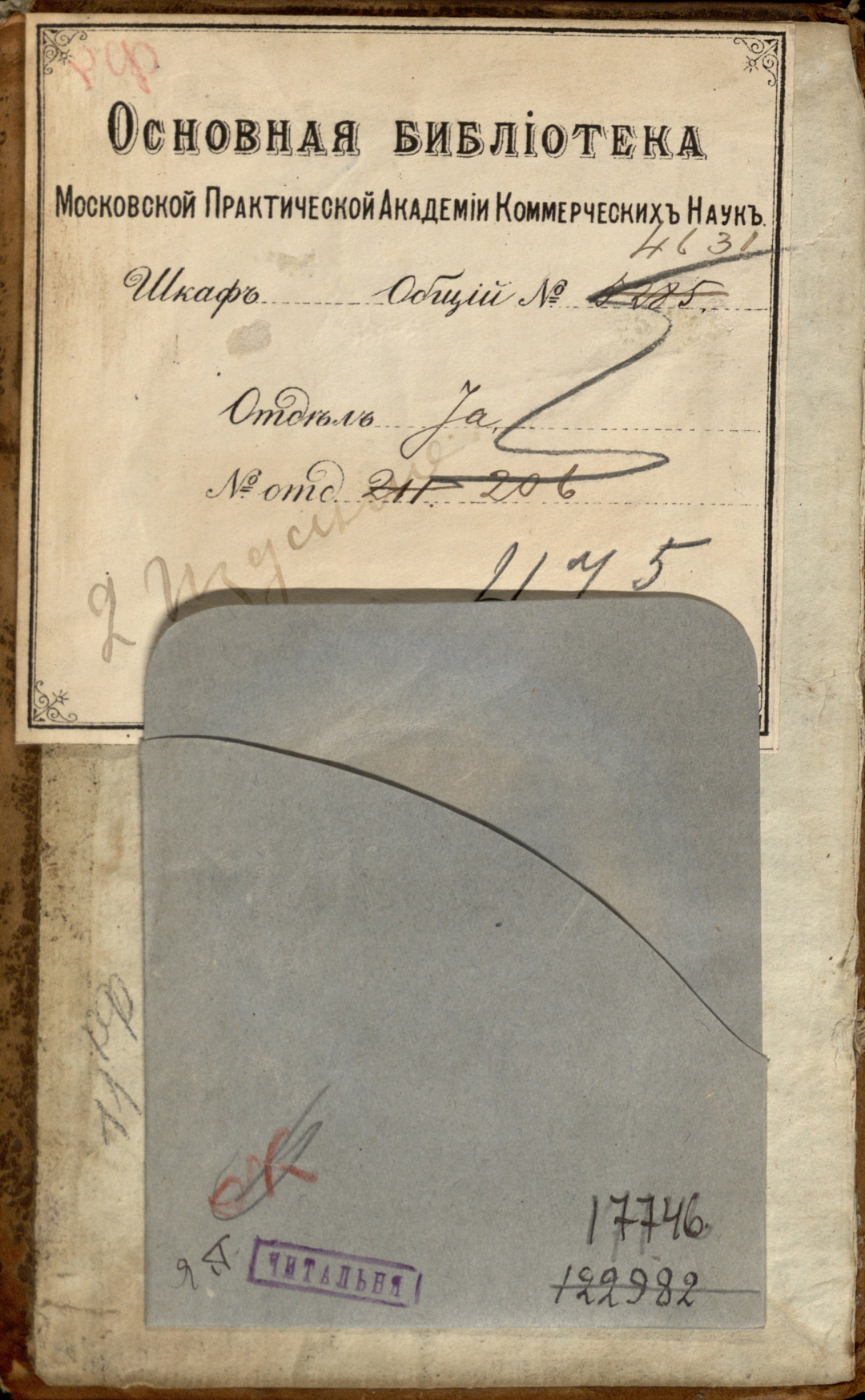 "Основная библиотека Московской Практической Академии Коммерческих Наук" (зачеркнуто)