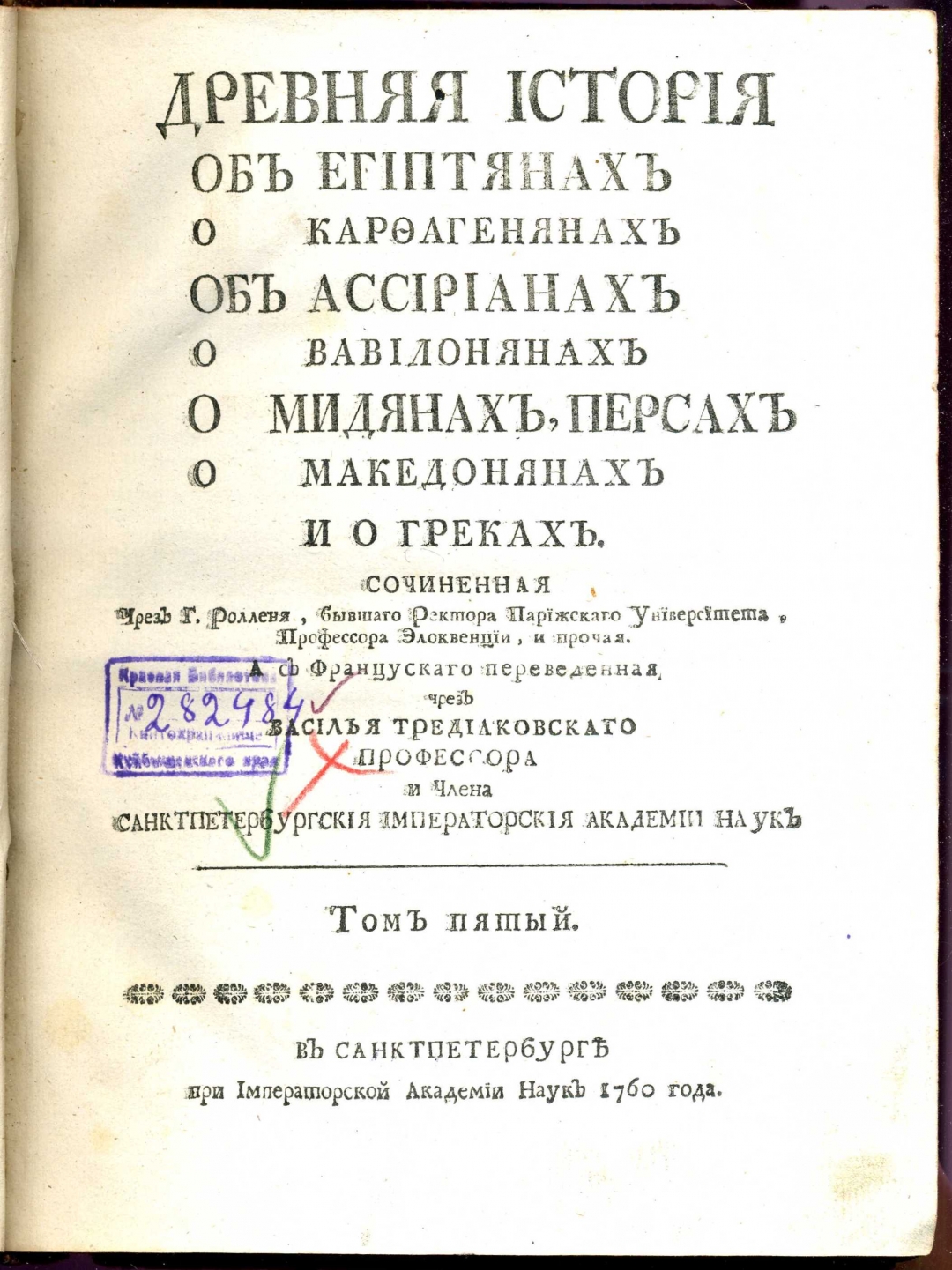 Пометы на с. [1], на обороте нахзаца (карандаш); на титульном листе (чернила, цв. карандаш); на с. 17, 370 (чернила)