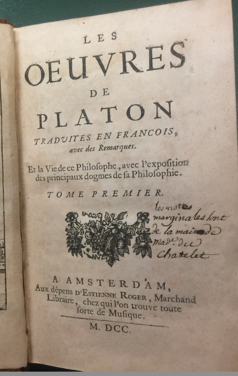 Авторы рукописных помет: François-Marie Arouet de Voltaire; Gabrielle Émilie le Tonnelier de Breteuil Du Châtelet. Установл. по: Corpus des notes marginales de Voltaire = Корпус читательских помет Вольтера. T. 6. — Oxford, 2006. — С. 337-431