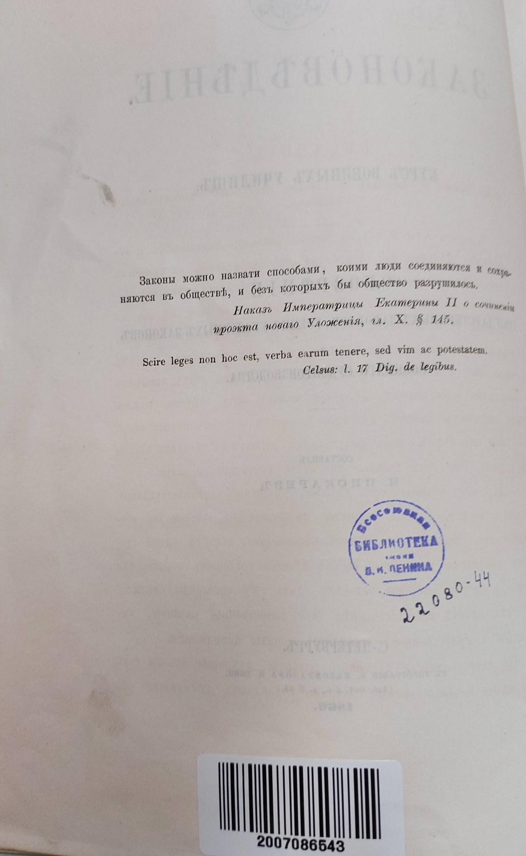 Номер и название архивного собрания, в котором хранится книжный памятник