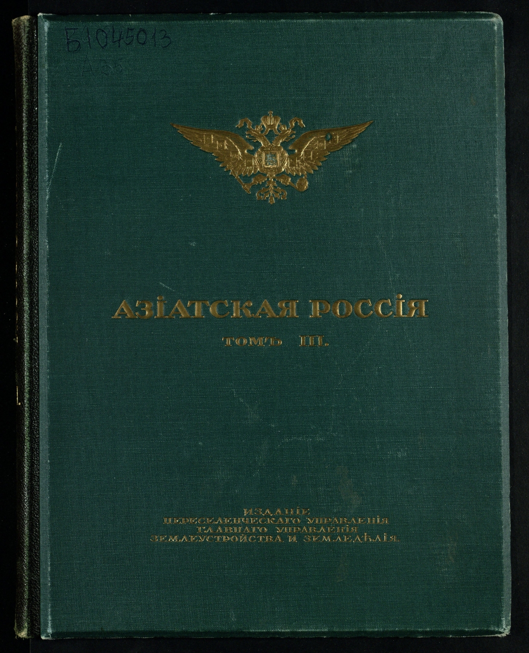 Экземпляр в издательском коленкоровом переплете с золотым тиснением по верхней крышке и корешку. На крышке – тисненый золотом герб Российской империи.