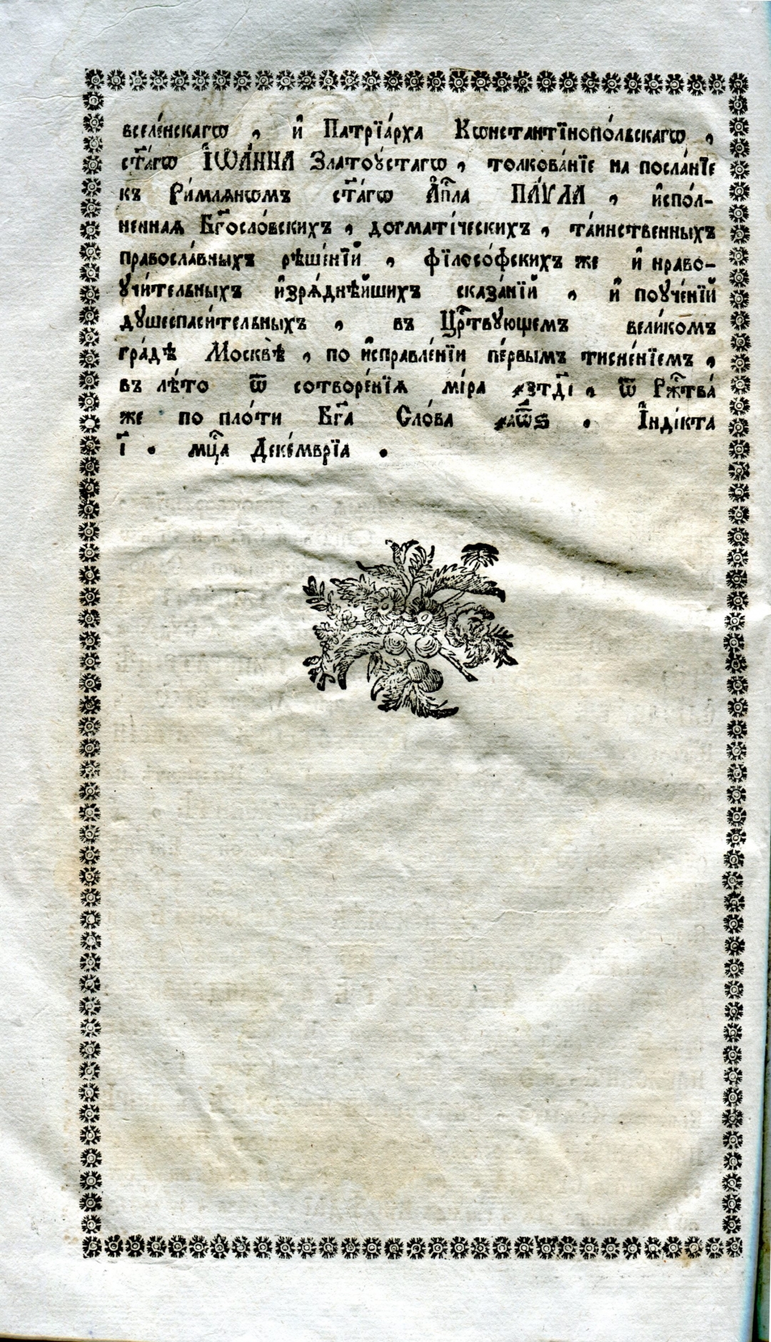 Конволют. Приплетена 1 кн.: Иоанн Златоуст. Беседы ...Иоанна Златоустаго, Толкование на послание к Филипписием святаго апостола Павла ... М., 1806. Переплет цельный кожаный. Корешок с бинтами. Блинтовое тиснение на корешке.