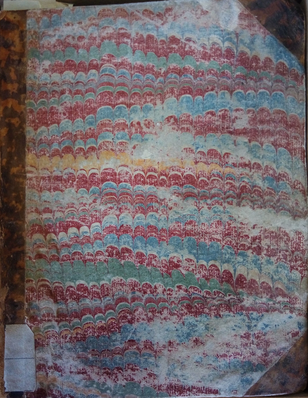 Аллигат. Приплетено к: Der Frantzose in Venedig [etc.]. - [Санкт-Петербург, 1733]. (аллигат 14). Переплет полукожаный. На корешке - золотое тиснение, на крышках - мраморная бумага. Обрез отделан крупным крапом и пятнами под эрзац-мрамор.