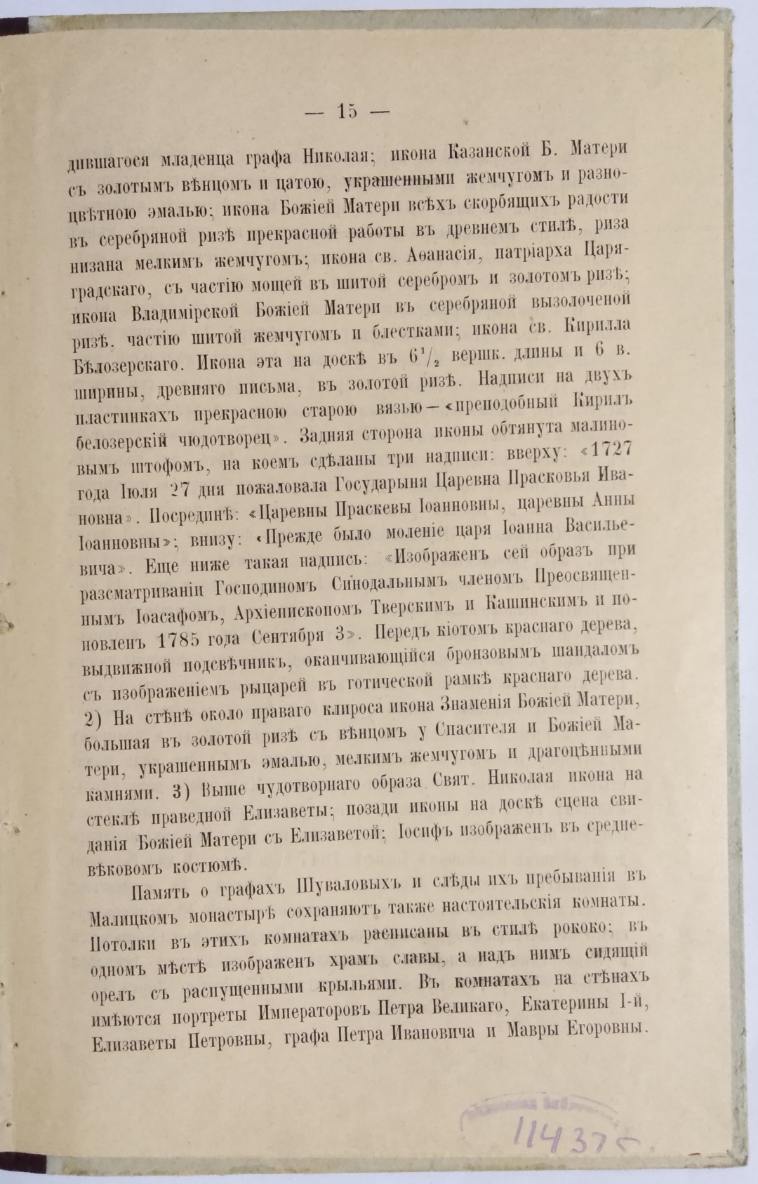 Пометы: на верхней крышке переплета (чернила, шариковая ручка); на титульном листе (карандаш, чернила); на с. 15 (чернила); на с. 16 (карандаш)
