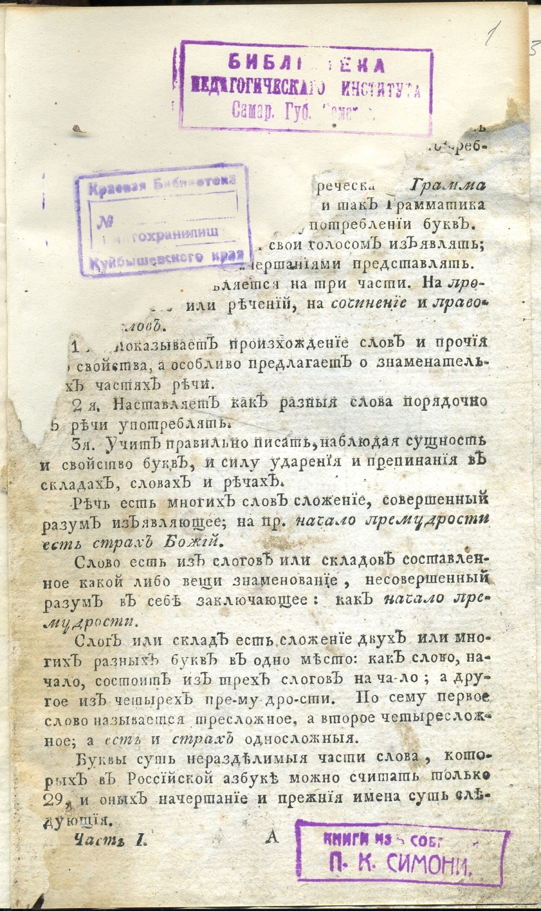 Запись о принадлежности экземпляра Павлу Константиновичу Симони на форзаце (чернила)